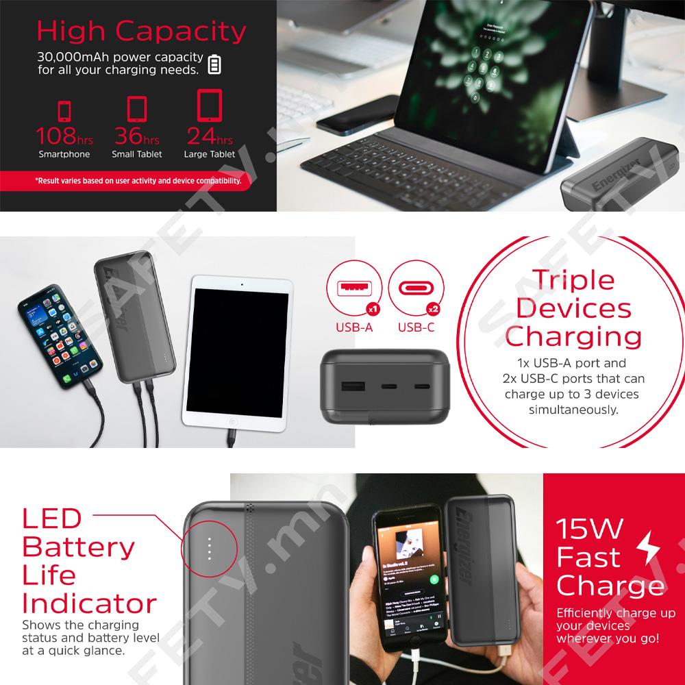 Energizer 30,000mAh, 15W Output and Multi-Port Charging Power Bank