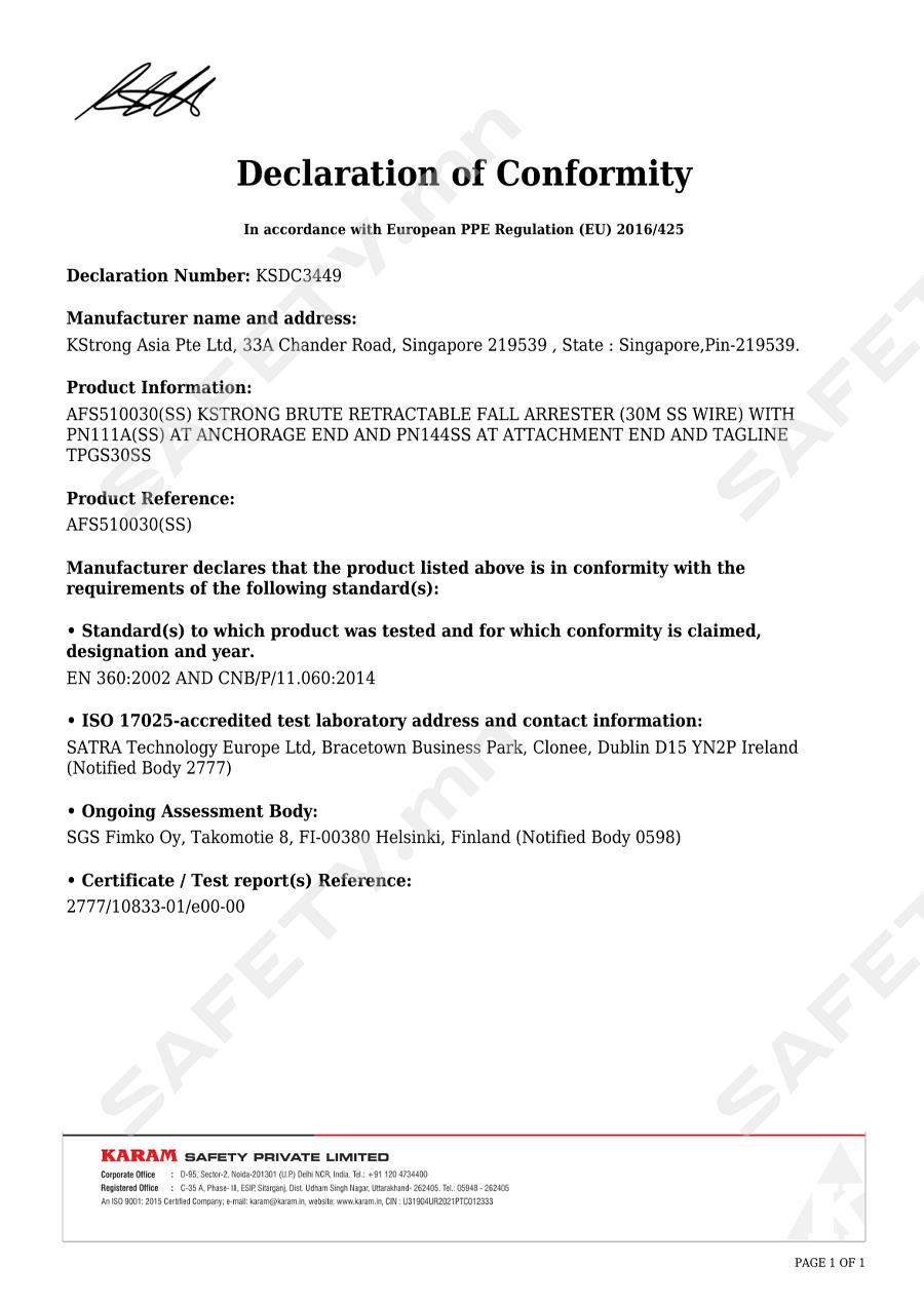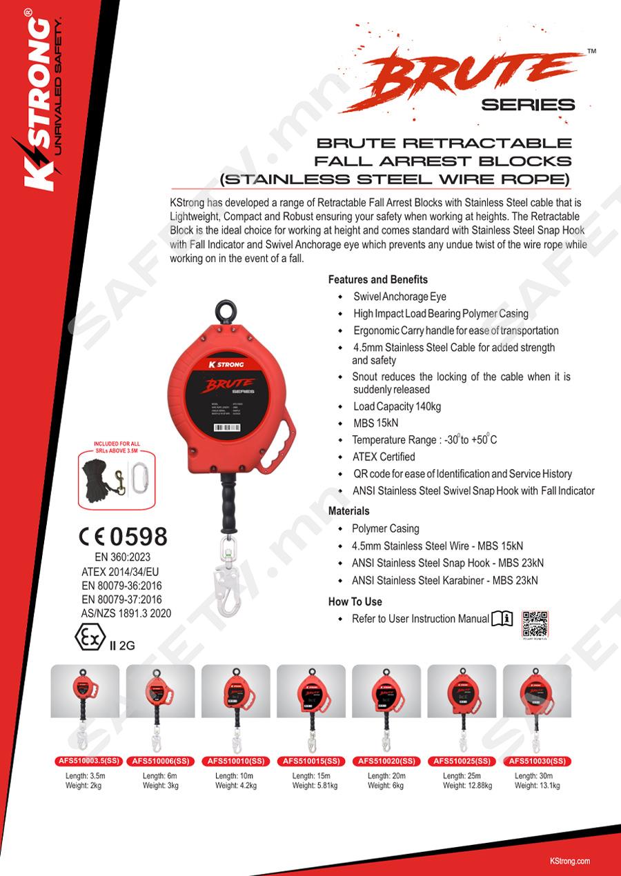 KStrong Brute SRL Block (Wire Rope) 30 Meter with Steel Snap Hook