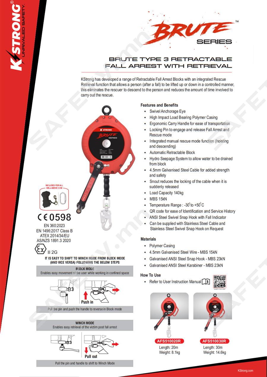 KStrong Brute Retrieval Block 30 Meter with Steel Snap Hook