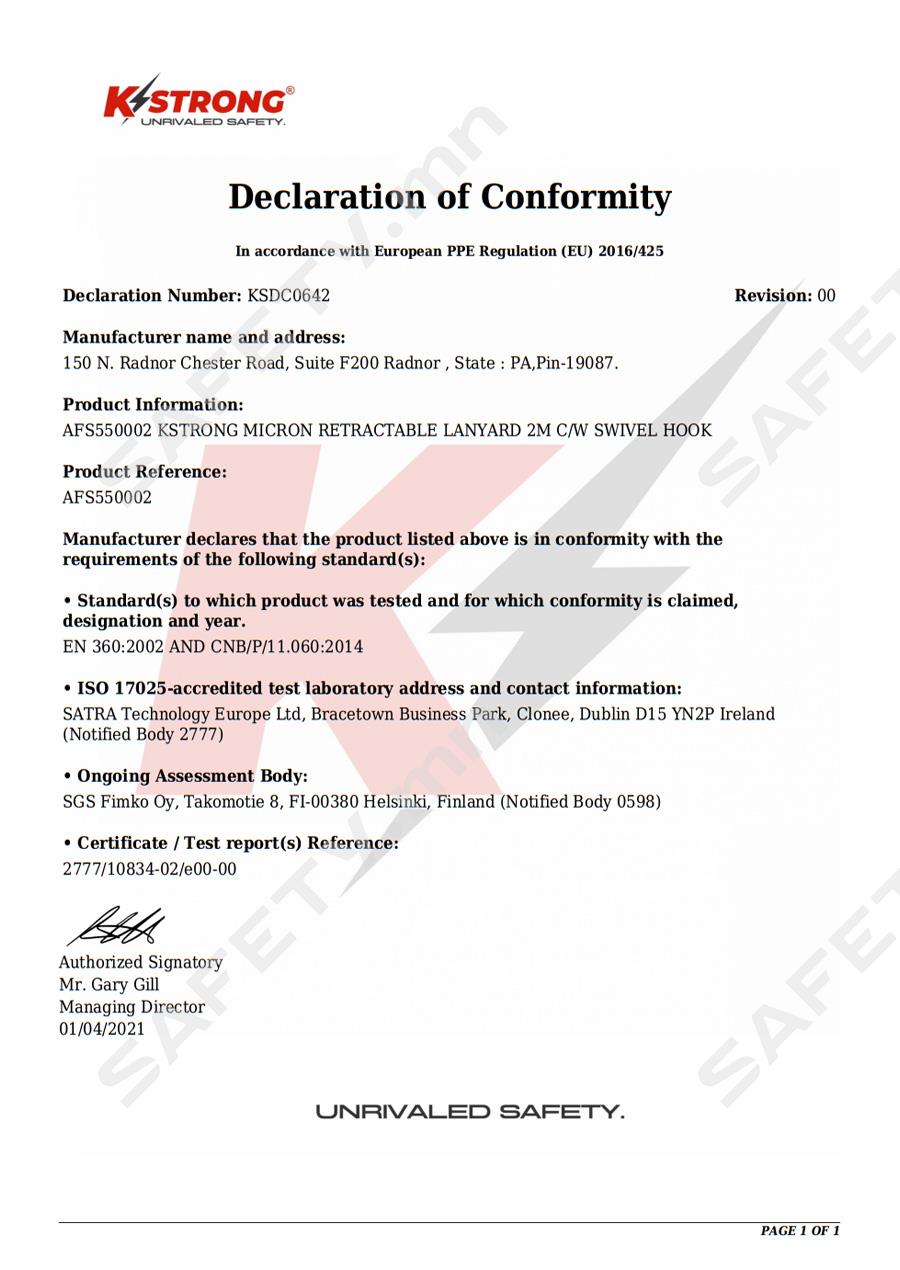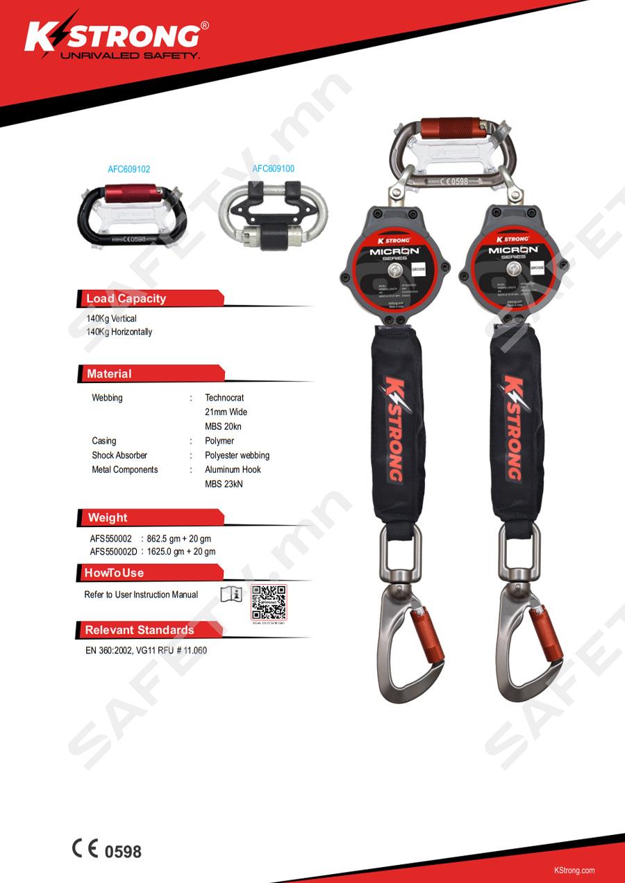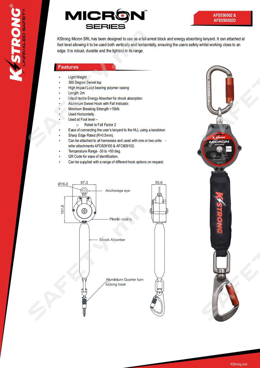 KStrong Micron Retractable Lanyard C/W Swivel Aluminium Hook & Aluminium Karabiner At Top 2M