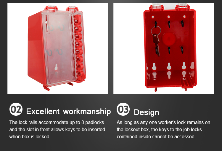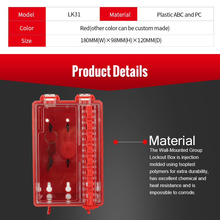 a) The Wall-Mounted Group Lockout Box is injection molded using Isoplast polymers for extra durability, has excellent chemical and heat resistance and is impossible to corrode.